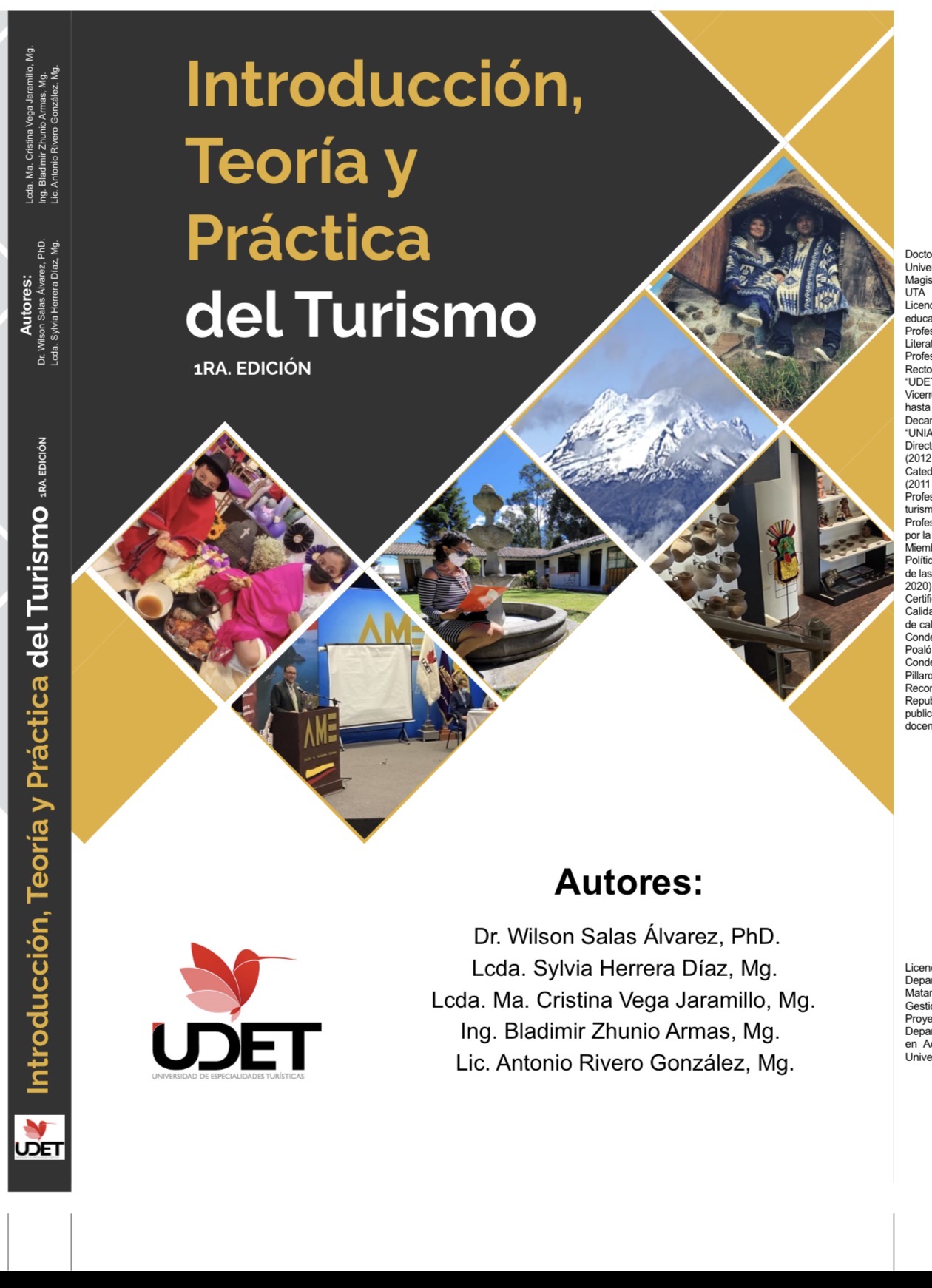 2021Salas Álvarez, W., Herrera Díaz, S., Vega Jaramillo, M. C., Zhunio Armas, B., & Rivero González, A. (2021). Introducción, teoría y práctica del turismo [Libro digital]. Edicumbre Editorial Corporativa. Universidad de Especialidades Turísticas. ISBN 978-9942-929-14-3.