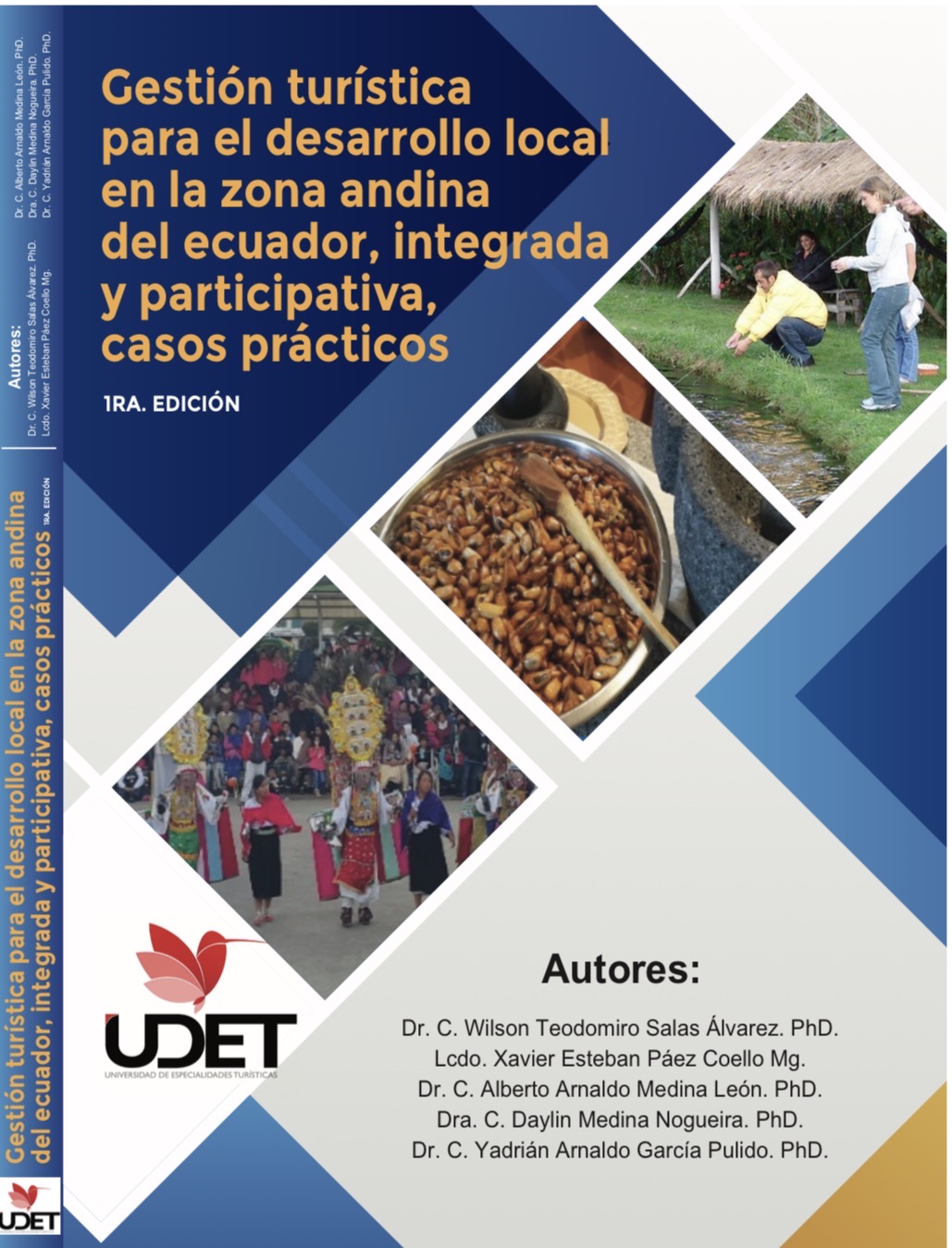 2021Salas Álvarez, W. T., Páez Coello, X. E., Medina León, A. A., Medina Nogueira, D., & García Pulido, Y. A. (2021). Gestión turística para el desarrollo local en la zona andina del Ecuador: Integrada y participativa. Casos prácticos[Libro digital]. Edicumbre Editorial Corporativa. Universidad de Especialidades Turísticas. ISBN 978-9942-929-15-0.